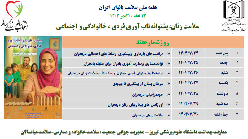اعلام روزشمار هفته ملی سلامت بانوان (سبا):